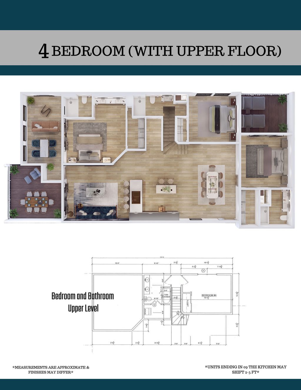 4th FLOOR: 4 Bedroom 4 Bath. Approximately 1919 on Main and 348 on Upper Level. LARGEST UNIT!